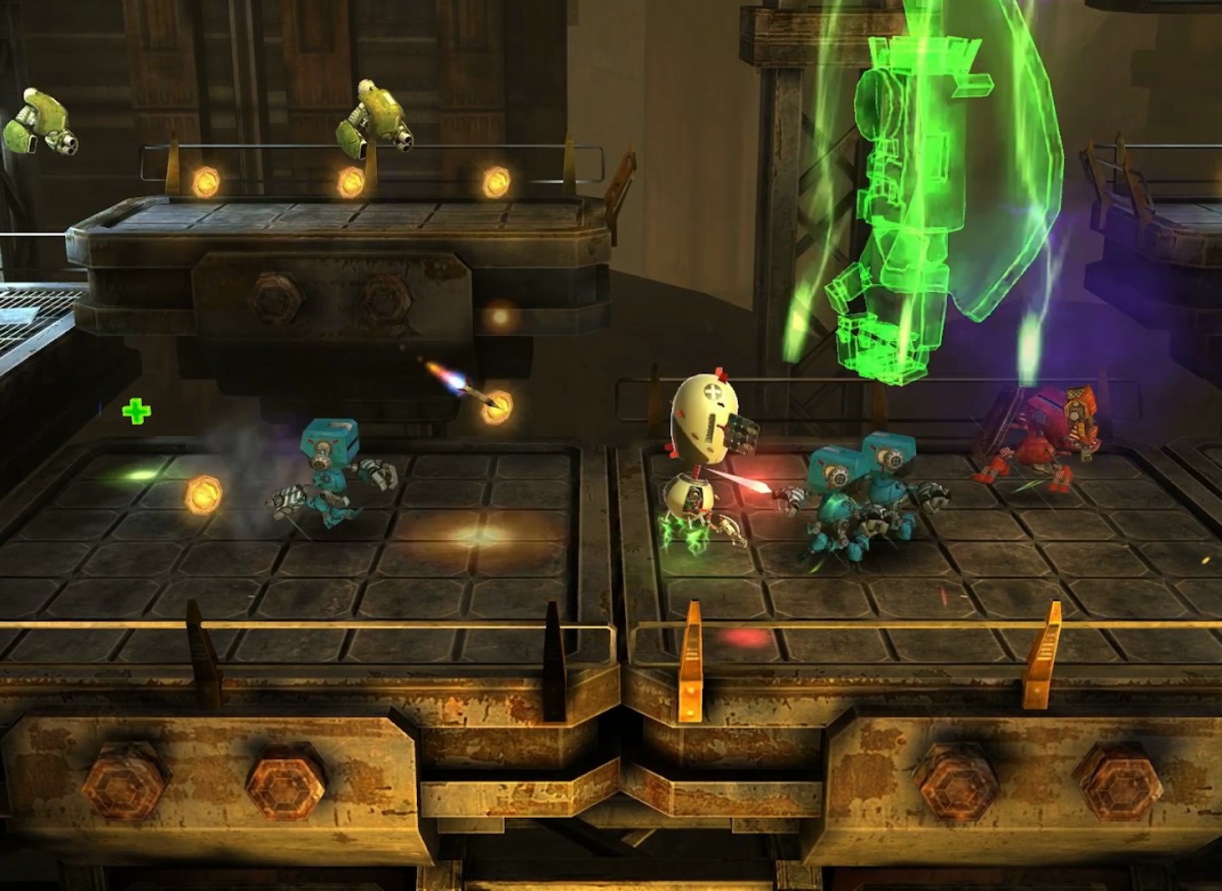 На выбор предлагаются несколько персонажей, каждый со своими уникальными способностями. Например, один герой может использовать щит, отражающий вражеские атаки, другой — запускать энергетические волны, а третий — призывать механических дронов. Такая вариативность позволяет подстраивать стиль игры под собственные предпочтения.