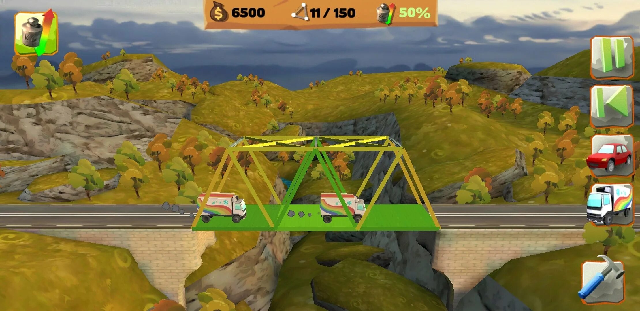- Неограниченный бюджет — можно строить мосты любой сложности.